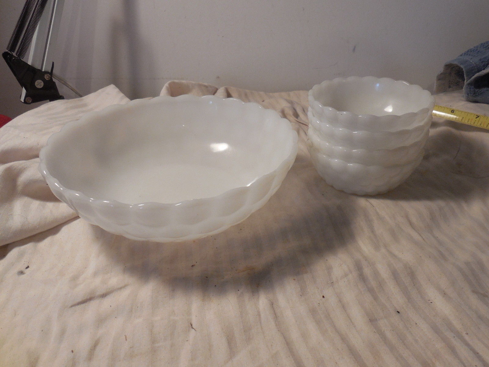 Anchor Hocking Fire King Milk Glass Bubble Bowl Salad Serving Fruit 8"