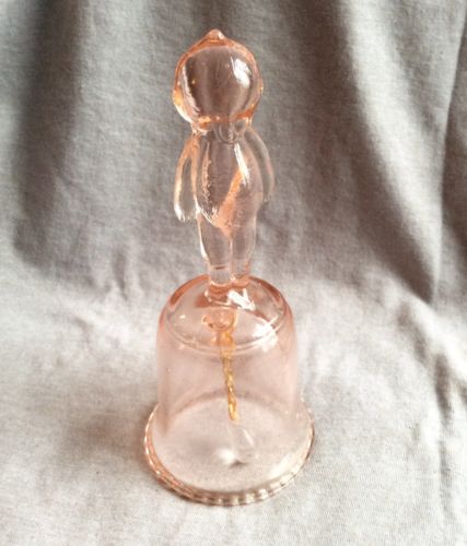 Title (ebay affiliate link): VINTAGE PINK DEPRESSION GLASS KEWPIE Bell Shape Child Figurine 5.5" T