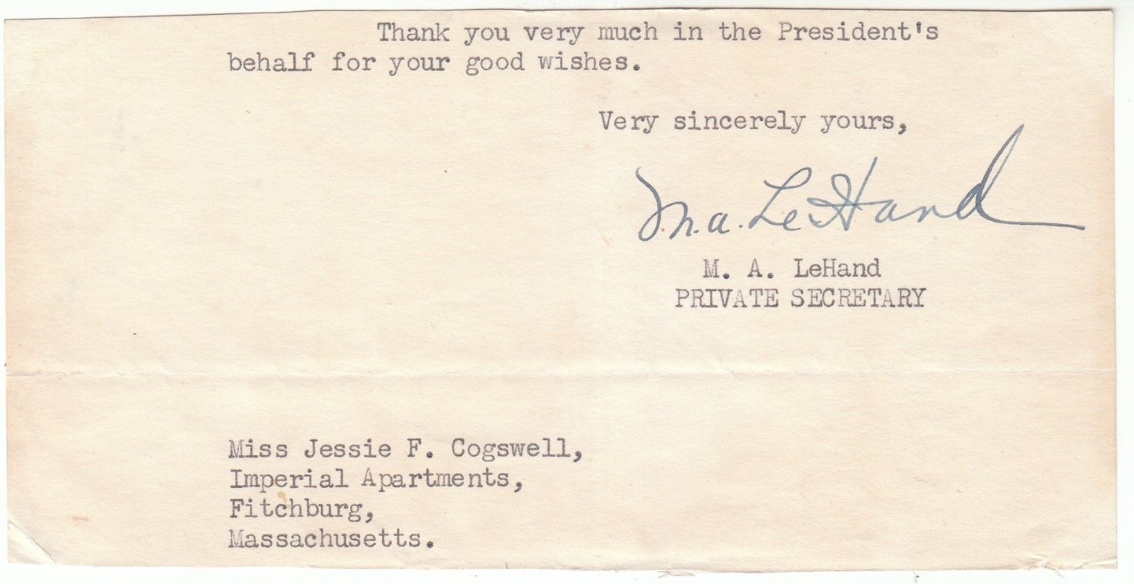Title (ebay affiliate link): MISSY LeHAND FDR ''s PRIVATE SECRETARY PARTIAL WHITE HOUSE LETTER SIGNED