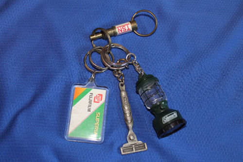 Title (ebay affiliate link): Vintage Estate Lot FUJI FILM COLEMAN LANTERN GILLETTE RAZOR Key Chain Fobs