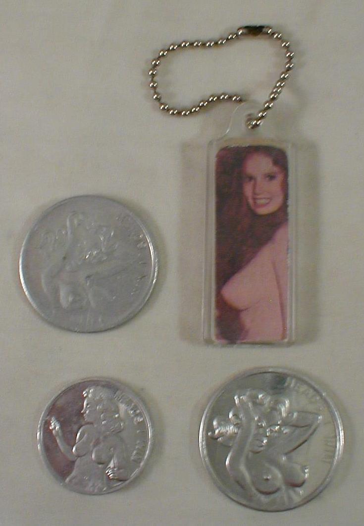 Lot of 4 Nudie Pin-Up Key Chain & Flip Coin Vintage Heads I Win - Tails You Lose