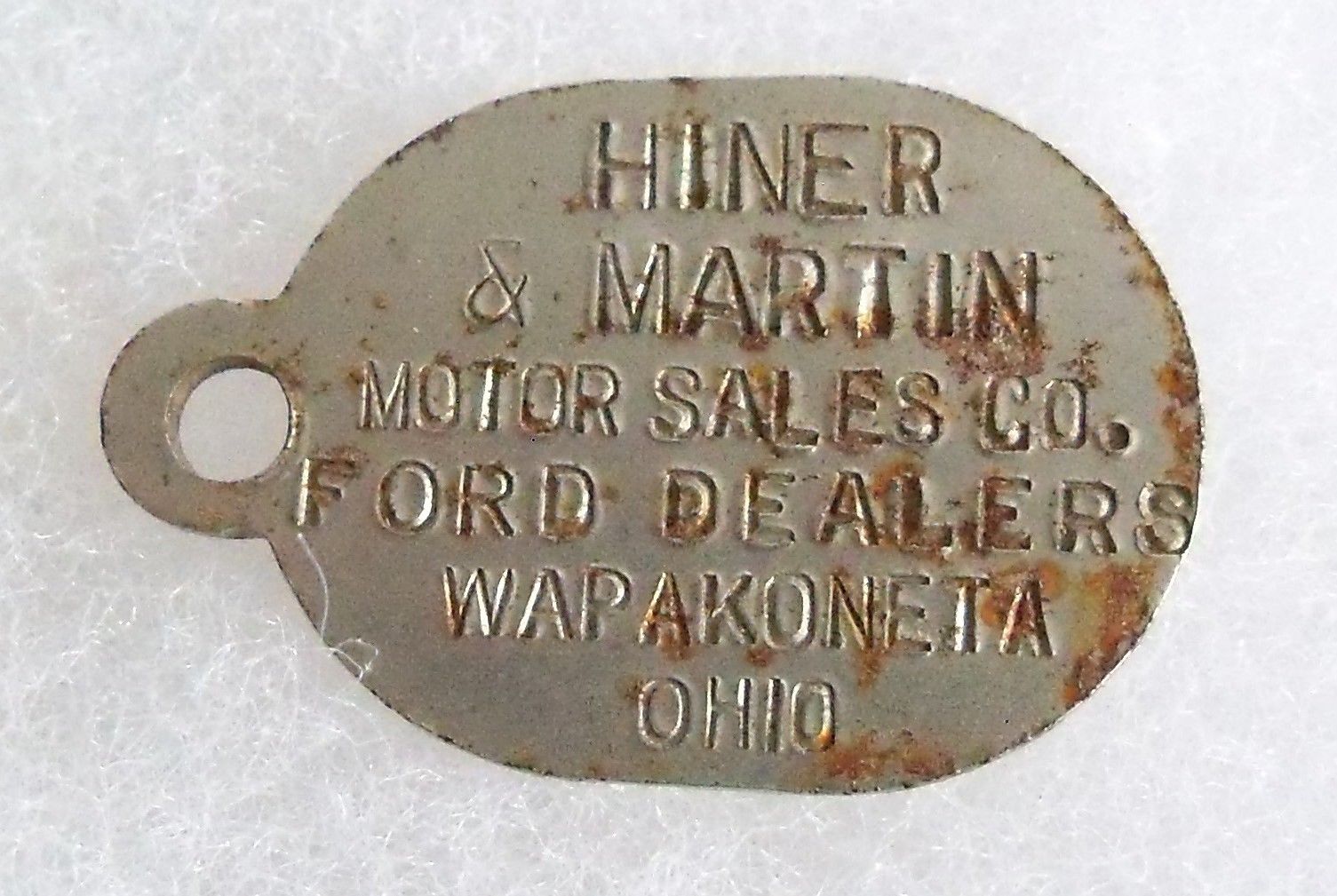 Vintage Hiner & Martin Motor Sales Ford Dealer Keychain Tag - Wapakoneta Ohio