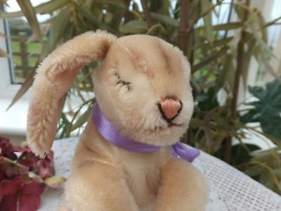 Vintage Steiff Sleepy Bedtime Bunny Rabbit Toy Floppy Hansi Silver Button Mohair