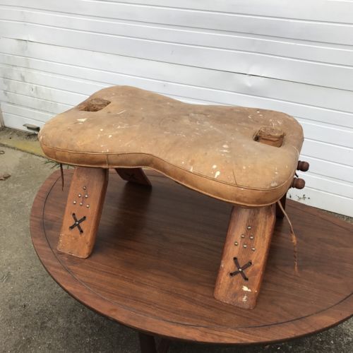 Title (ebay affiliate link): VINTAGE ANTIQUE WOOD LEATHER RAWHIDE EGYPTIAN CAMEL SADDLE FOOT STOOL OTTOMAN