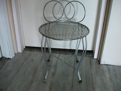 Title (ebay affiliate link): Vintage Hollywood Regency mid century Gold Metal scrolled Vanity Chair Stool