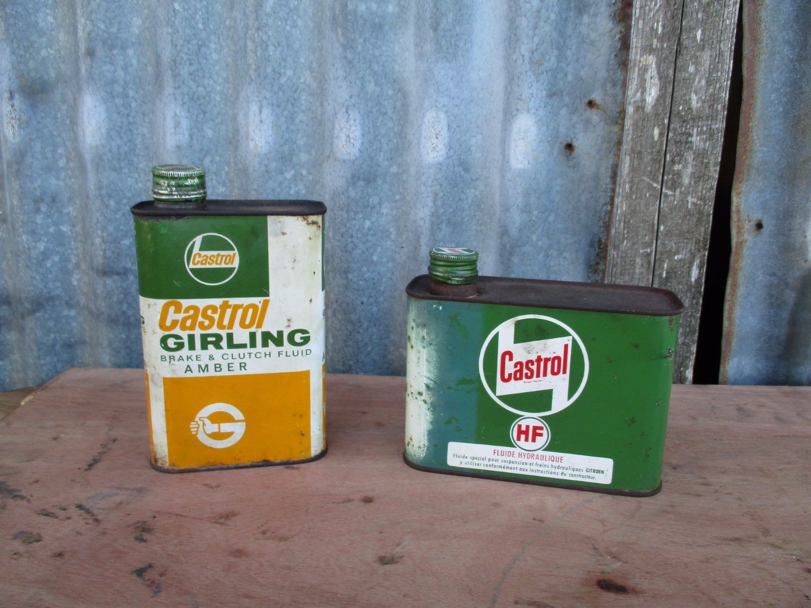 2 x Vintage CASTROL Oil Can.Enamel Sign Petrol Pump Globe Tractor Car Scooter