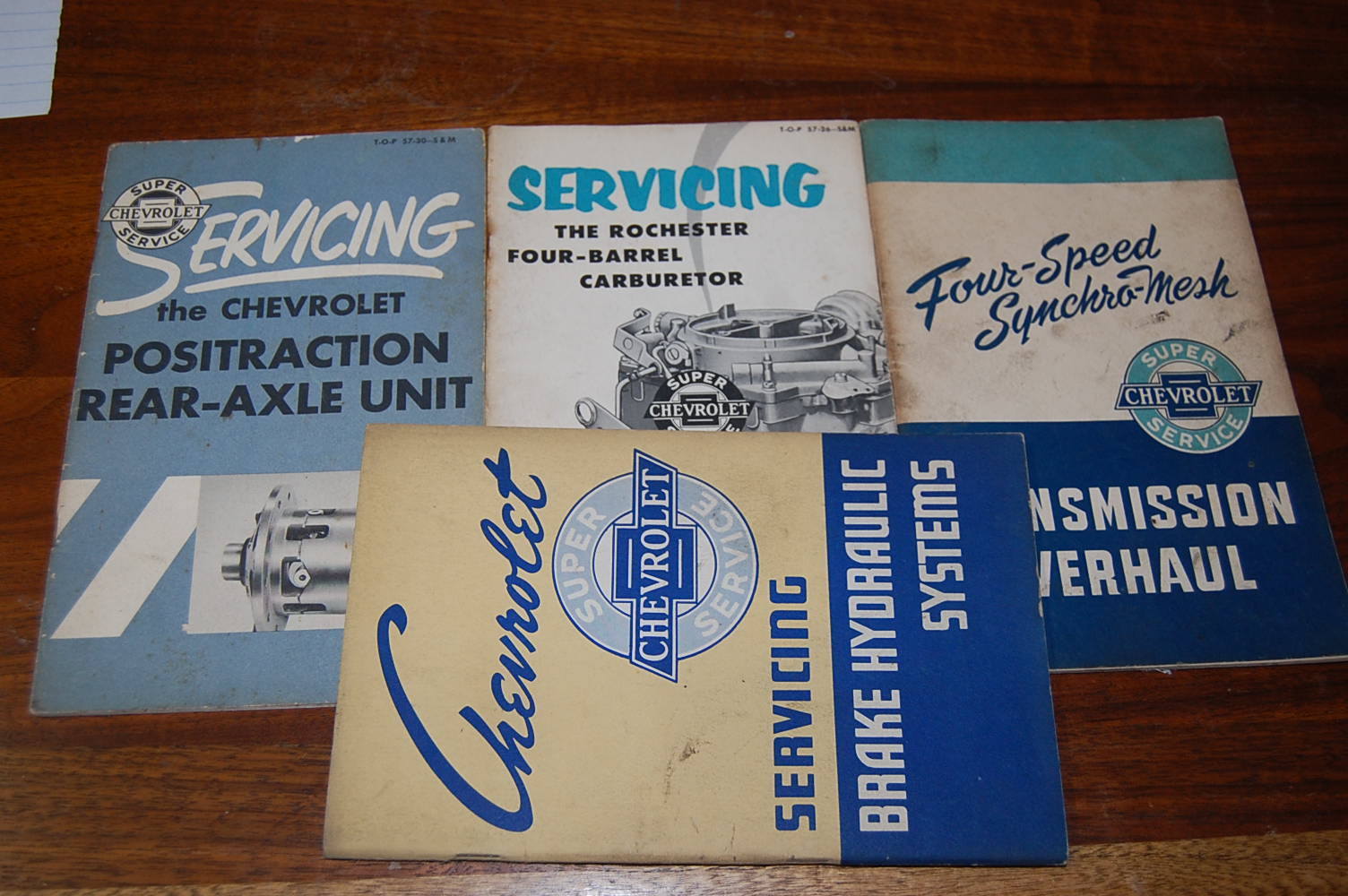 4 ORIGINAL 1957 CHEVROLET SERVICING CARBURETOR 4 SPEED BRAKE POSI BOOKLETS