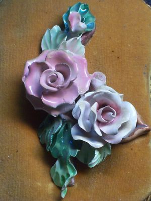 Title (ebay affiliate link): Capo di Monte Flowers Porcelain Roses on Velvet Hanger