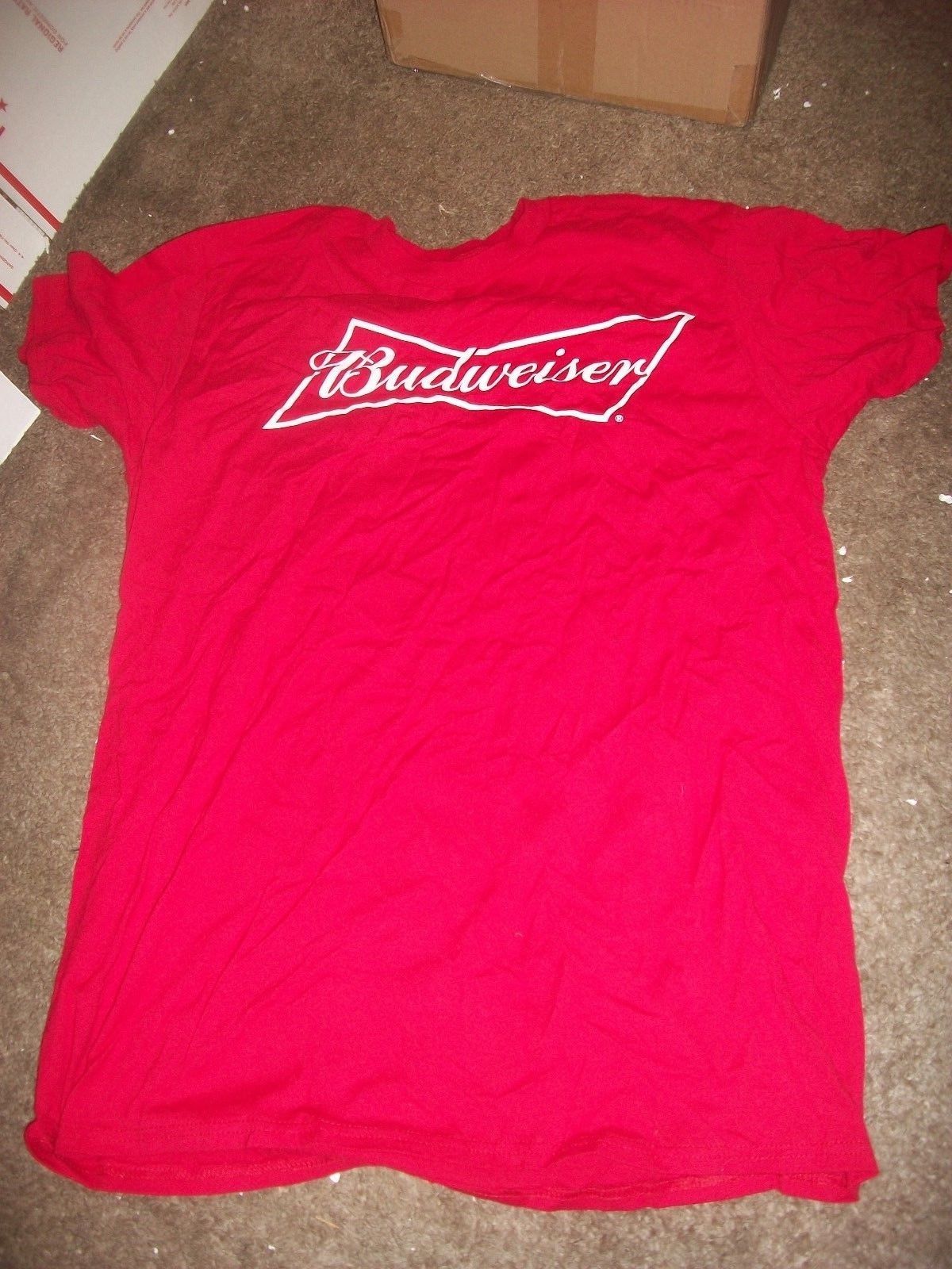 Title (ebay affiliate link): Budweiser red tee shirt white logo beer bar gift Large or XL birthday holiday