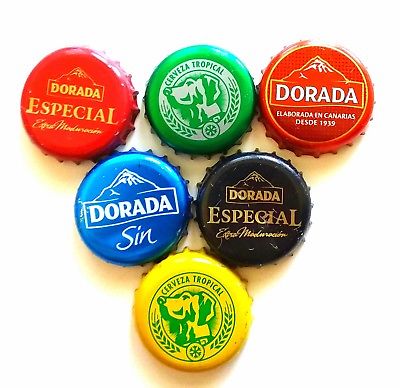 Title (ebay affiliate link): x6 DORADA CANARY ISLAND BEER BOTTLE CAP SPAIN BOTTLE CAP CHAPA KRONKORKEN