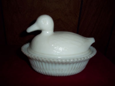 PIN TAIL DUCK COVERED DISH - MILK GLASS