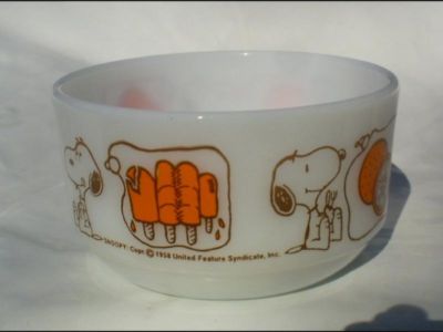 Snoopy Fire King Milk Glass Dessert Bowl c.1958 MINT