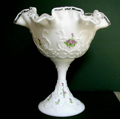 VINTAGE FENTON MILK GLASS COMPOTE, SIGNED PAULA PALMER