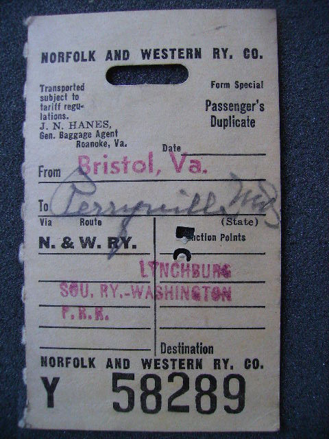 Title (ebay affiliate link): NORFOLK & WESTERN RAILWAY BAGGAGE TAG WITH BAGGAGE SERVICE STAMP BRISTOL VA