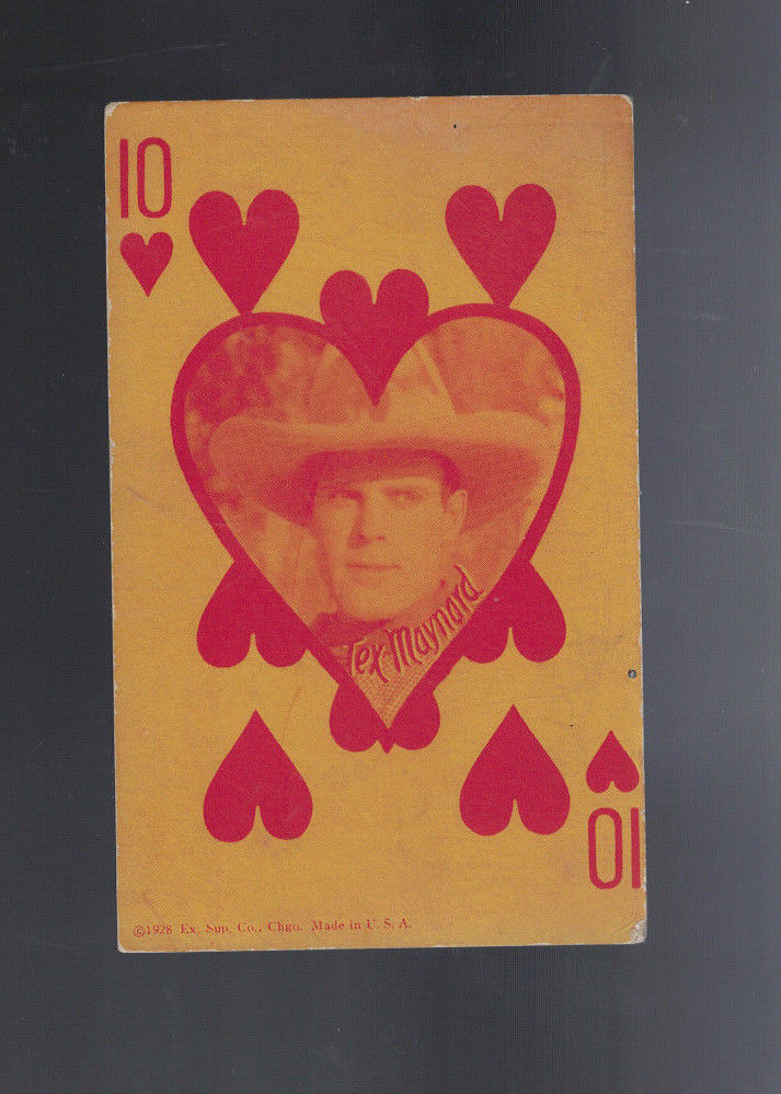 1928 EXHIBIT SUPPLY CARD TEX MAYNARD 10 HEARTS WITH POSTCARD BACK