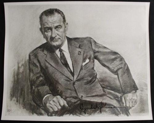 Title (ebay affiliate link): Vintage Lyndon B. Johnson Secretarial Signed B & W Photo Etching US President NR