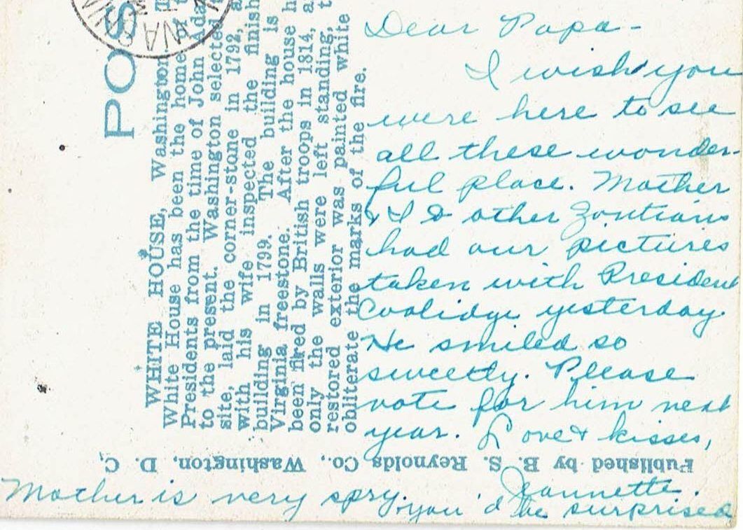 1927 Postcard White House Message re: ZONTA CLUB MEETS PREISDENT CALVIN COOLIDGE