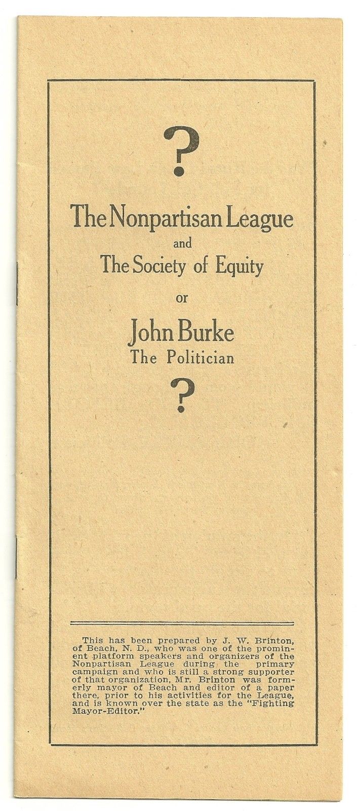 North Dakota ND Nonpartisan League BURKE Governor Political Campaign Brochure