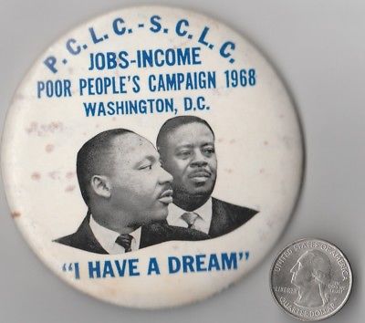 Title (ebay affiliate link): VINTAGE ORIGINAL 1968 "MARTIN LUTHER KING" PIN BACK BUTTON POOR PEOPLE CAMPAIGN