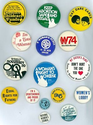 Title (ebay affiliate link): 16 Vintage 1970s-80s ERA & Women''s Rights Cause Pinback Buttons Women''s Council