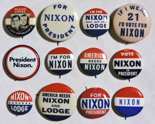 Title (ebay affiliate link): S576. VINTAGE: Lot of 12: RICHARD NIXON/LODGE Campaign Pinback Buttons (1960)`