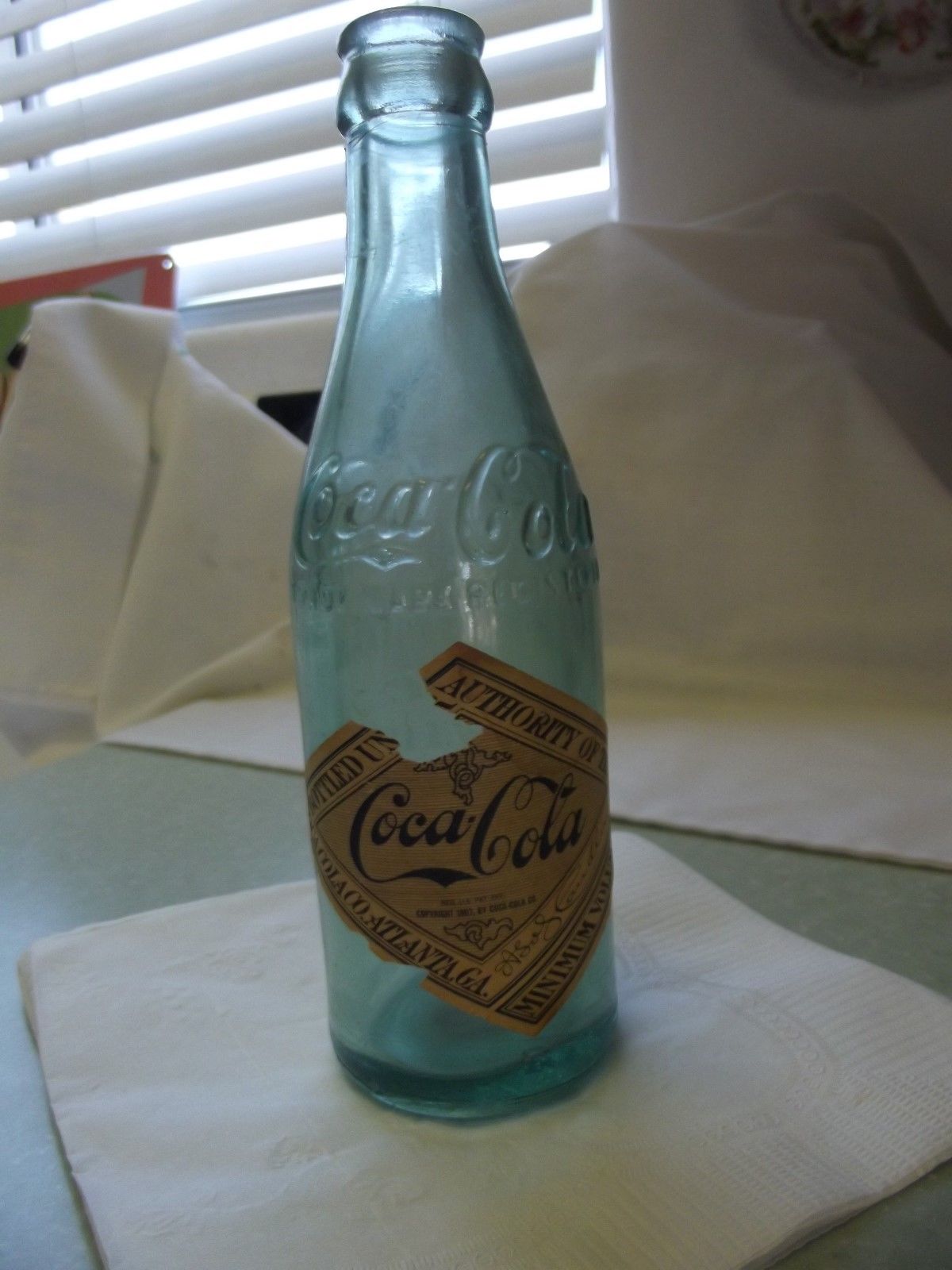 antique coca cola bottle, original paper label, Litchfield, shoulder script, S-S