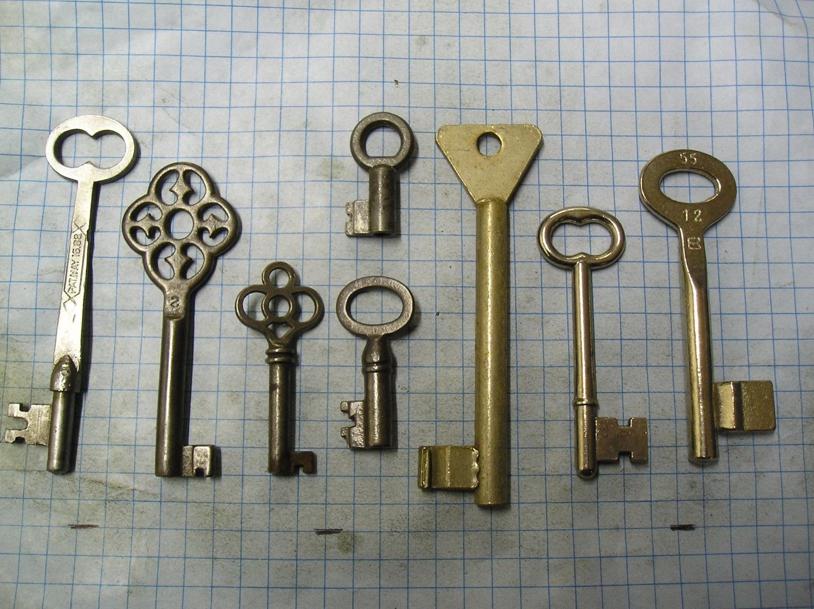 Title (ebay affiliate link): LOT OF 8 ANTIQUE SKELETON, FURNITURE, BARREL, CABINET AND OLD LOCK KEYS