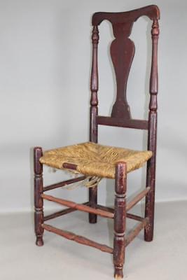 RARE 18TH C CONNECTICUT SHORELINE QUEEN ANNE SIDE CHAIR IN ORIGINAL RED PAINT