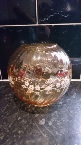 VINTAGE ANTIQUE SMOKED PATTERD BOWL OIL LAMP SHADE 4"FITTING