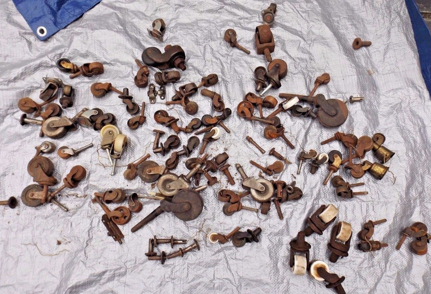 Title (ebay affiliate link): Lot of 84 Antique & Vintage Furniture Casters Wheels Brass Wood, Porcelain Parts