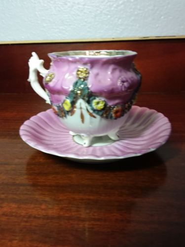 Vintage Footed Tea Cup & Ruffled Saucer Lilac Gold W/Gold Rim