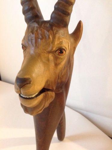 Black Forest Carved Wood Ibex Ram Nutcracker Vintage