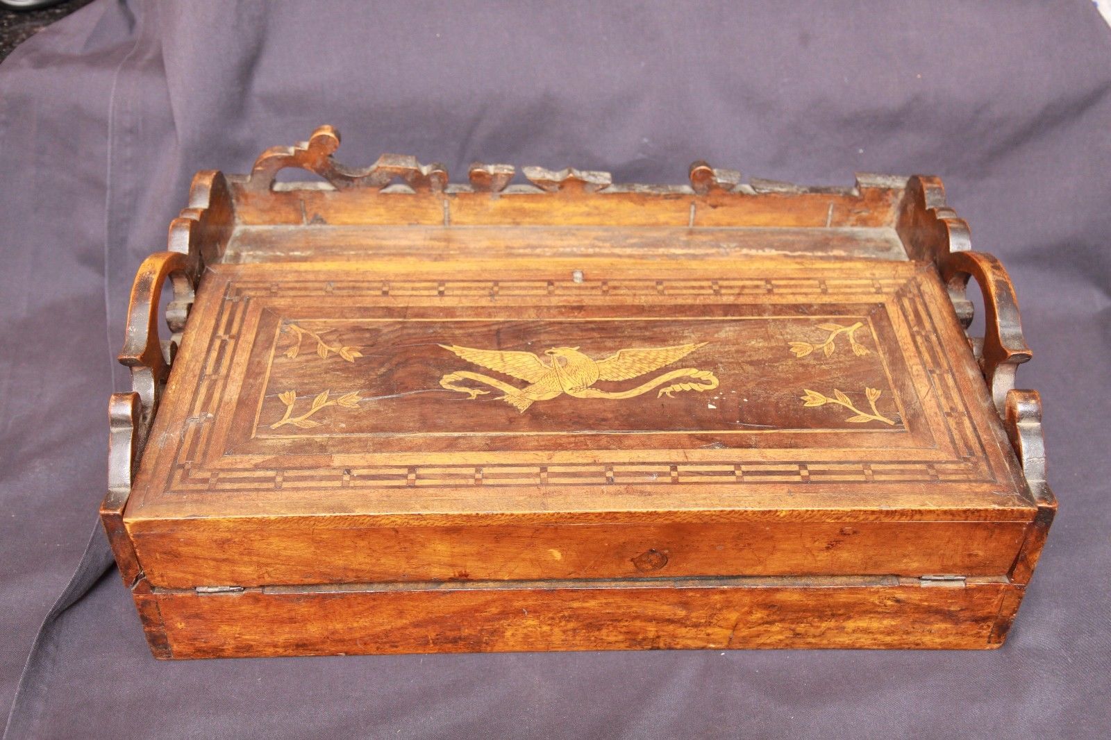 Antique Wood Lap Desk Writing Document Box w/ Inlaid Eagle & Compartments