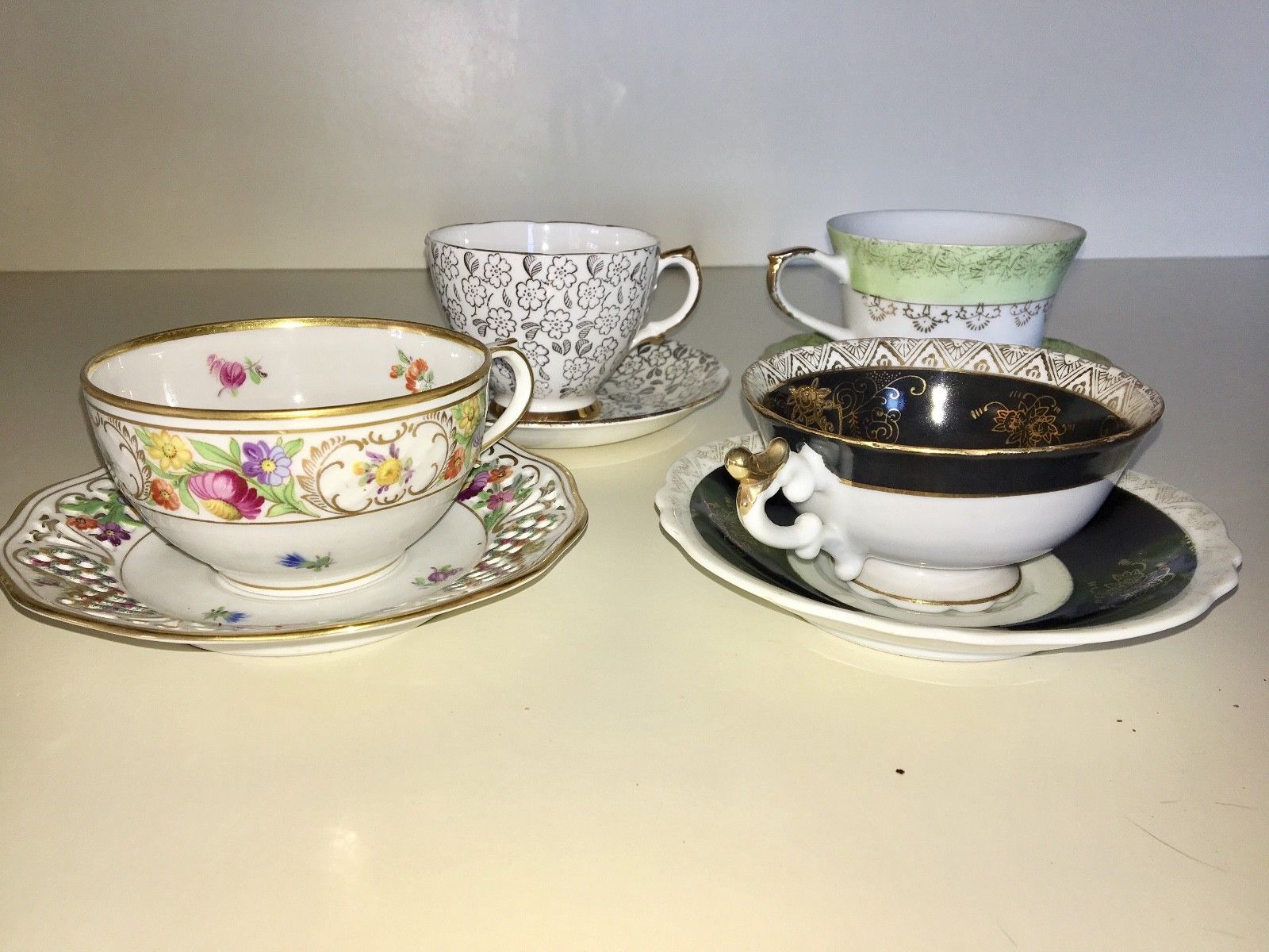 LOT OF 4 VINTAGE TEA CUPs AND SAUCERs- ROYAL VALE, SCHUMANN, CHASE