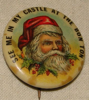 Title (ebay affiliate link): RARE 1900 MEET ME IN MY CASTLE CELLULOID SANTA PIN