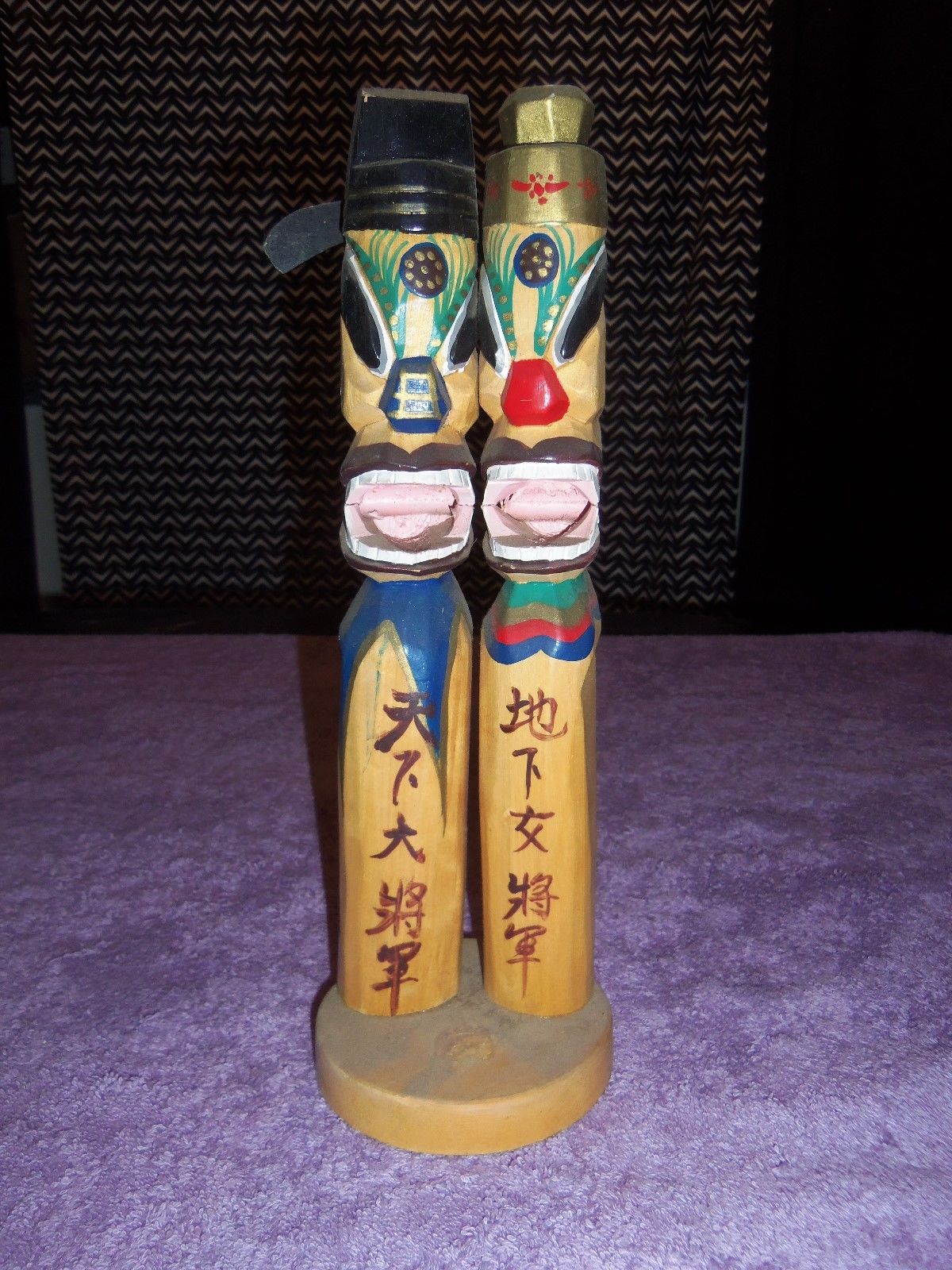 Title (ebay affiliate link): Vintage rare hand carved wooden Asian Japanese God double wood totem pole statue