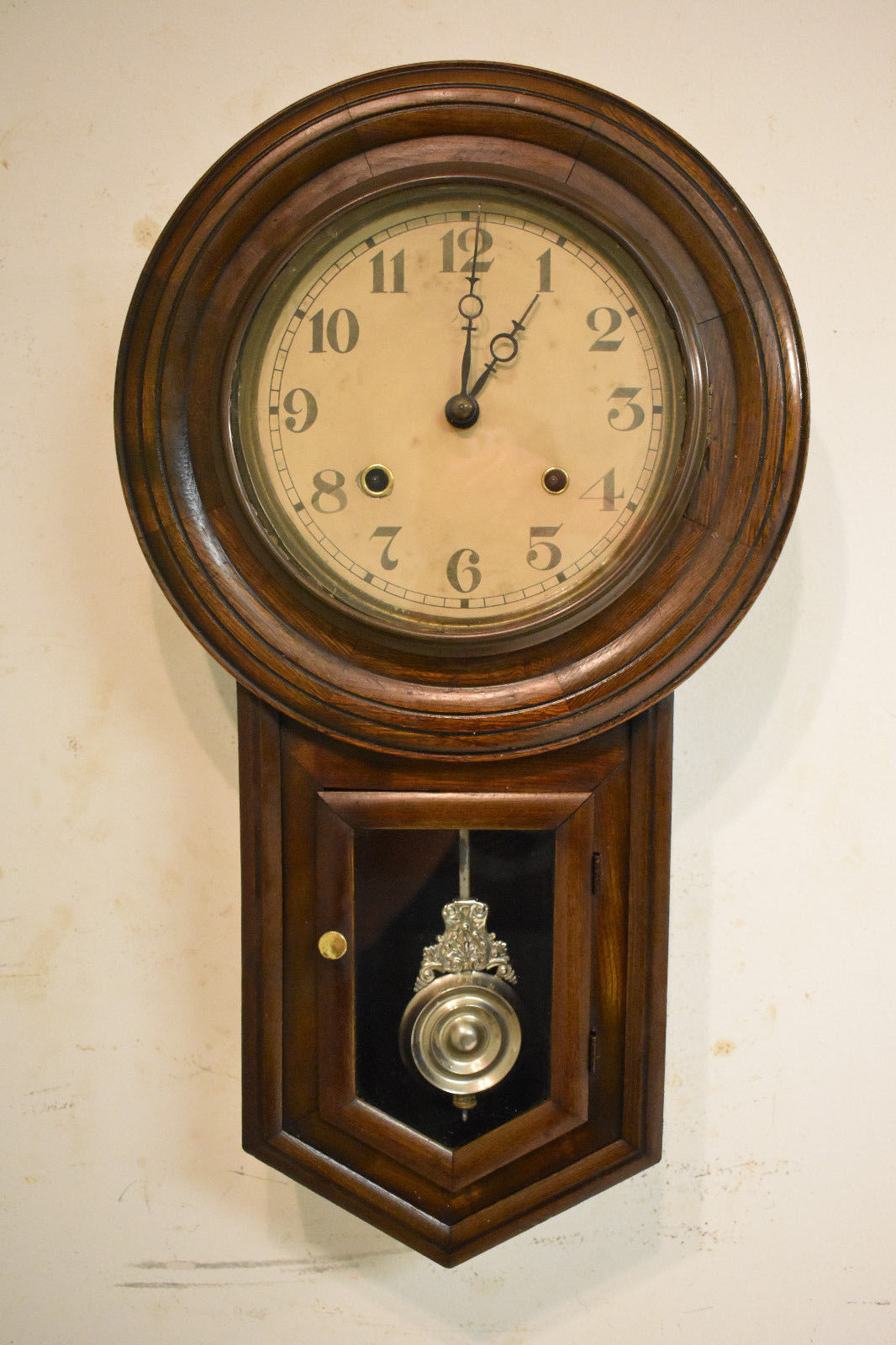 ANTIQUE 8 DAY C.M.A TIME & STRIKE WALL CLOCK CLEANED & RUNNING 17A