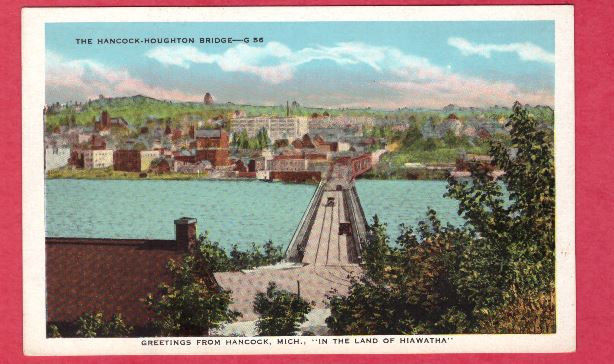 Houghton Hancock bridge Keweenaw Michigan postcard land of Hiawatha Mich MI