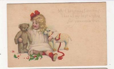 ELLEN CLAPSADDLE SWEET CHRISTMAS PC GIRL WITH TEDDY BEAR & LAMB