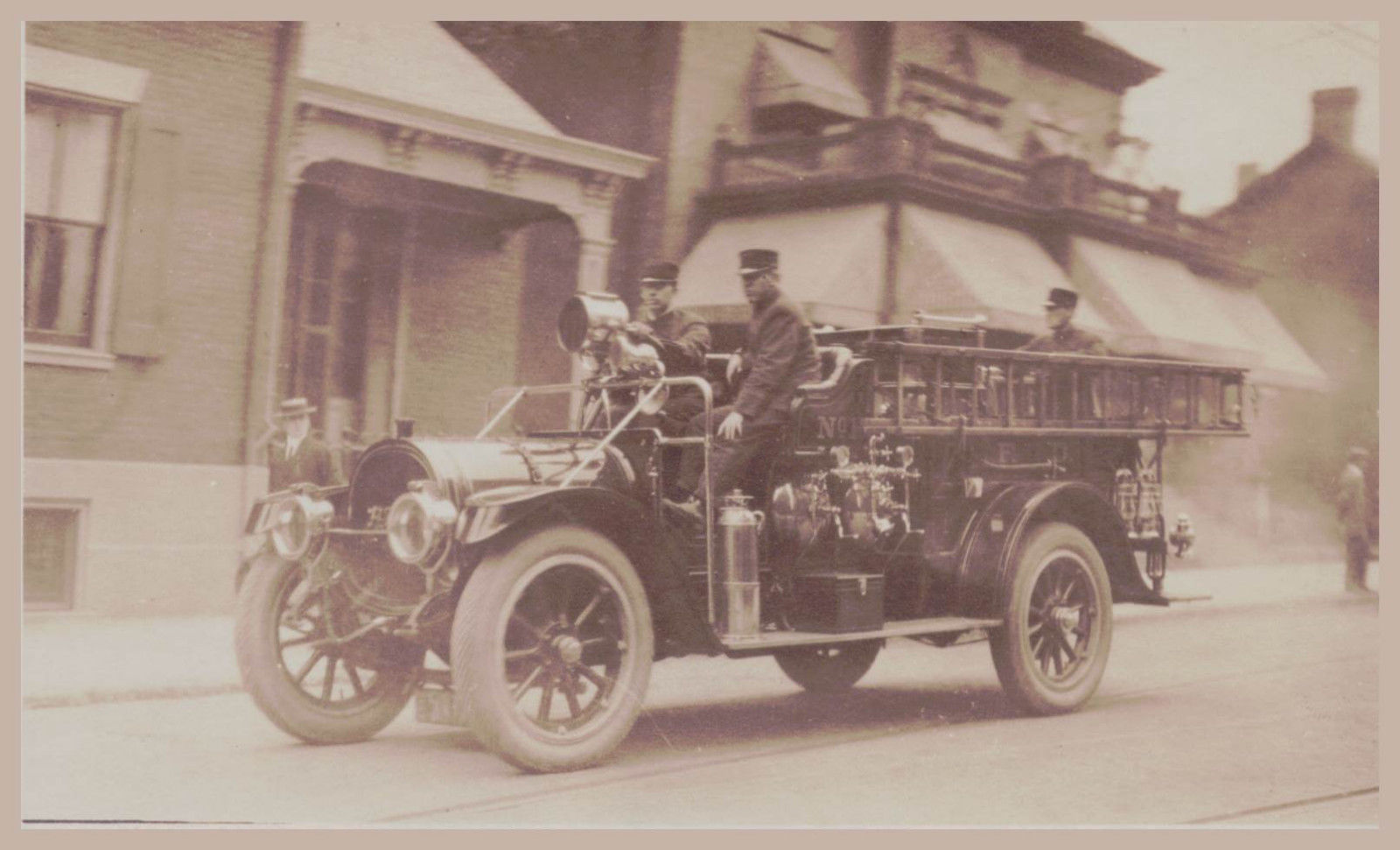Early 1900s RPPC Brass Fire Engine Postcard Firemen Ladder Truck Unposted