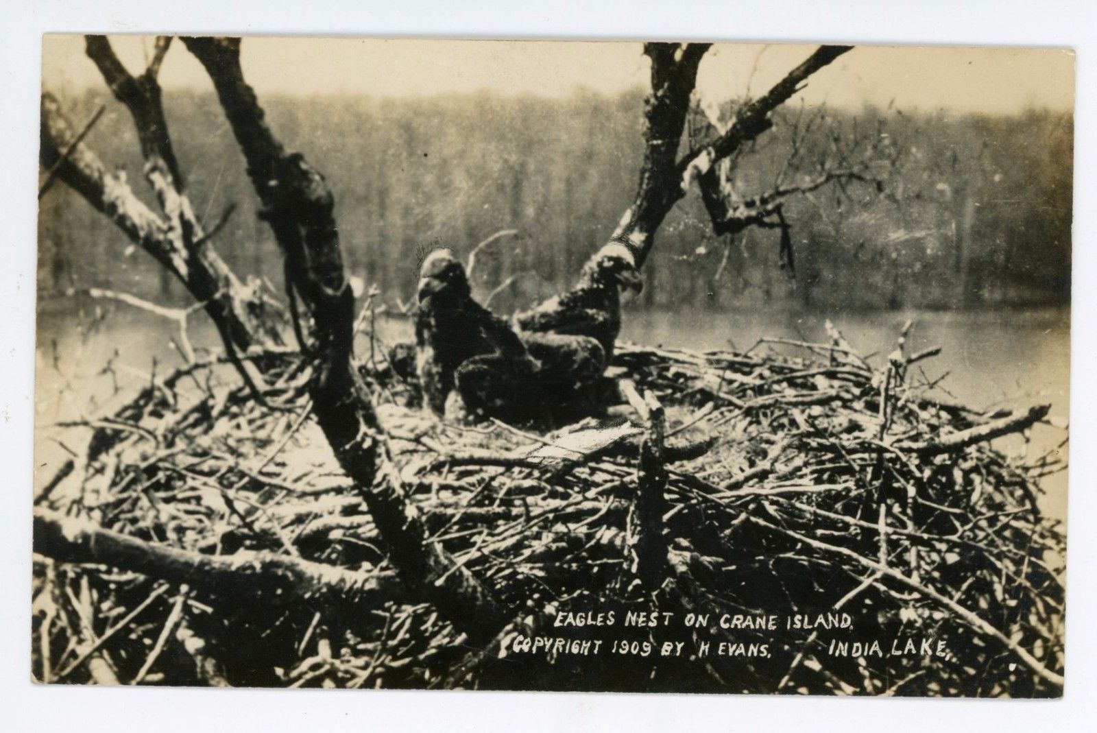 Title (ebay affiliate link): RPPC 1909 Indian Lake Oh Eagles Nest Crane Island by H Evans & J S Brentlinger
