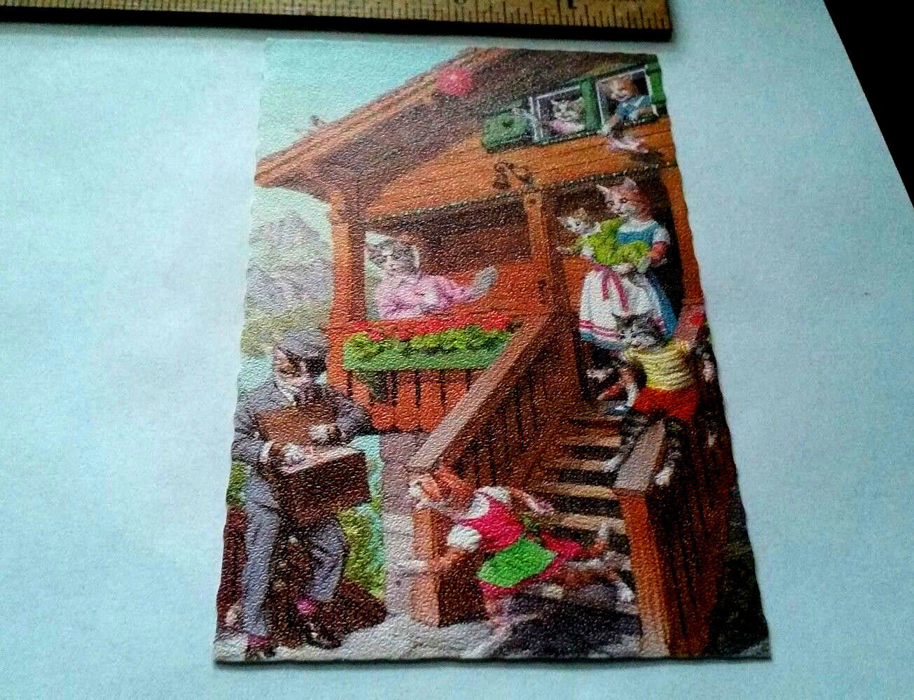 Vintage ALFRED MAINZER comic CAT POSTCARD #4986 lots of fun family action