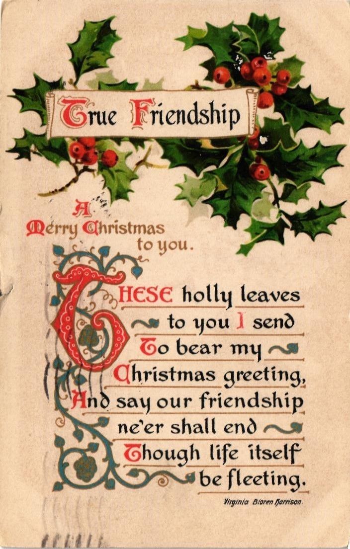 Title (ebay affiliate link): DR JIM STAMPS US TRUE FRIENDSHIP HOLLY CHRISTMAS VERSE POSTCARD MADE IN BAVARIA