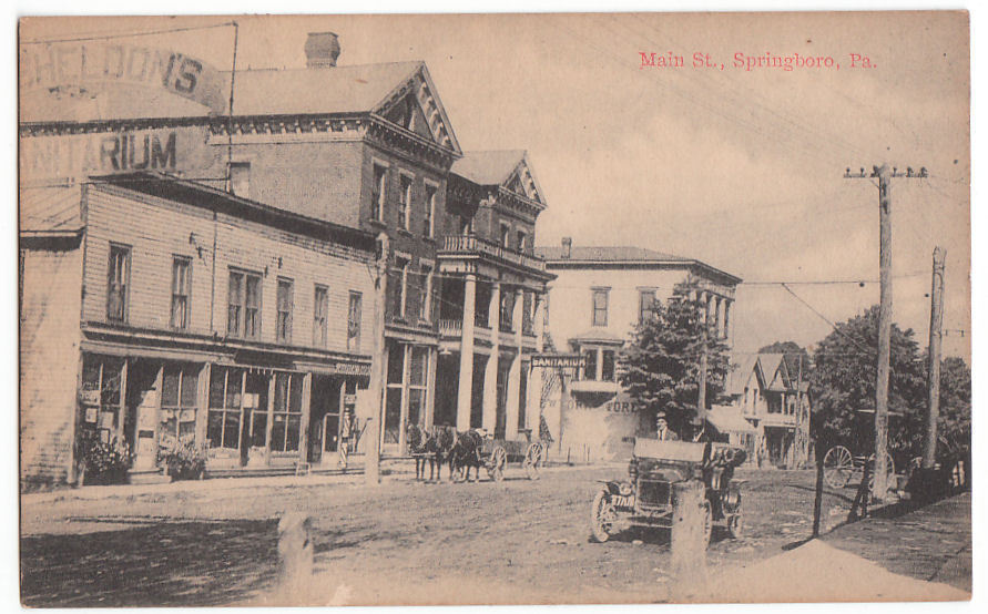 Erly Old Car Horse Cart Sheldon''s Sanitarium Street Scene Springboro PA Crawford