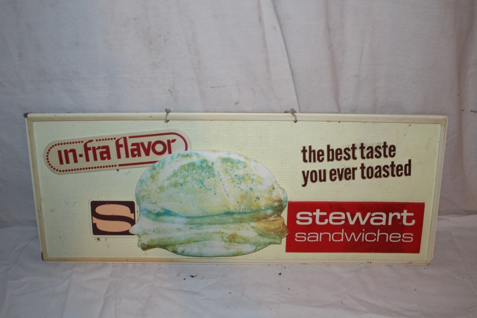 Vintage 1960''s Stewart Sandwiches Soda Pop Restaurant Gas Oil 26" Embossed Sign