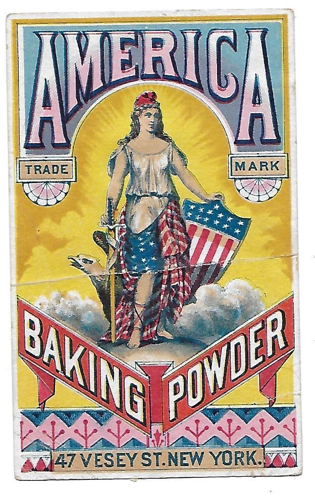RARE--AMERICA BAKING POWDER VICTORIAN TRADE CARD-GRAPHIC