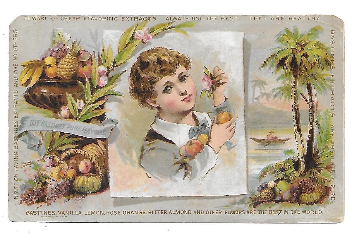 GEORGE E. DAY GROCERIES VICTORIAN TRADE CARD TYOR N.Y. BASTINES EXTRACTS