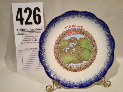 Title (ebay affiliate link): #426 - C.1918 Panama Canal Old Glory Presidents Flow Blue Edge Commerative Plate