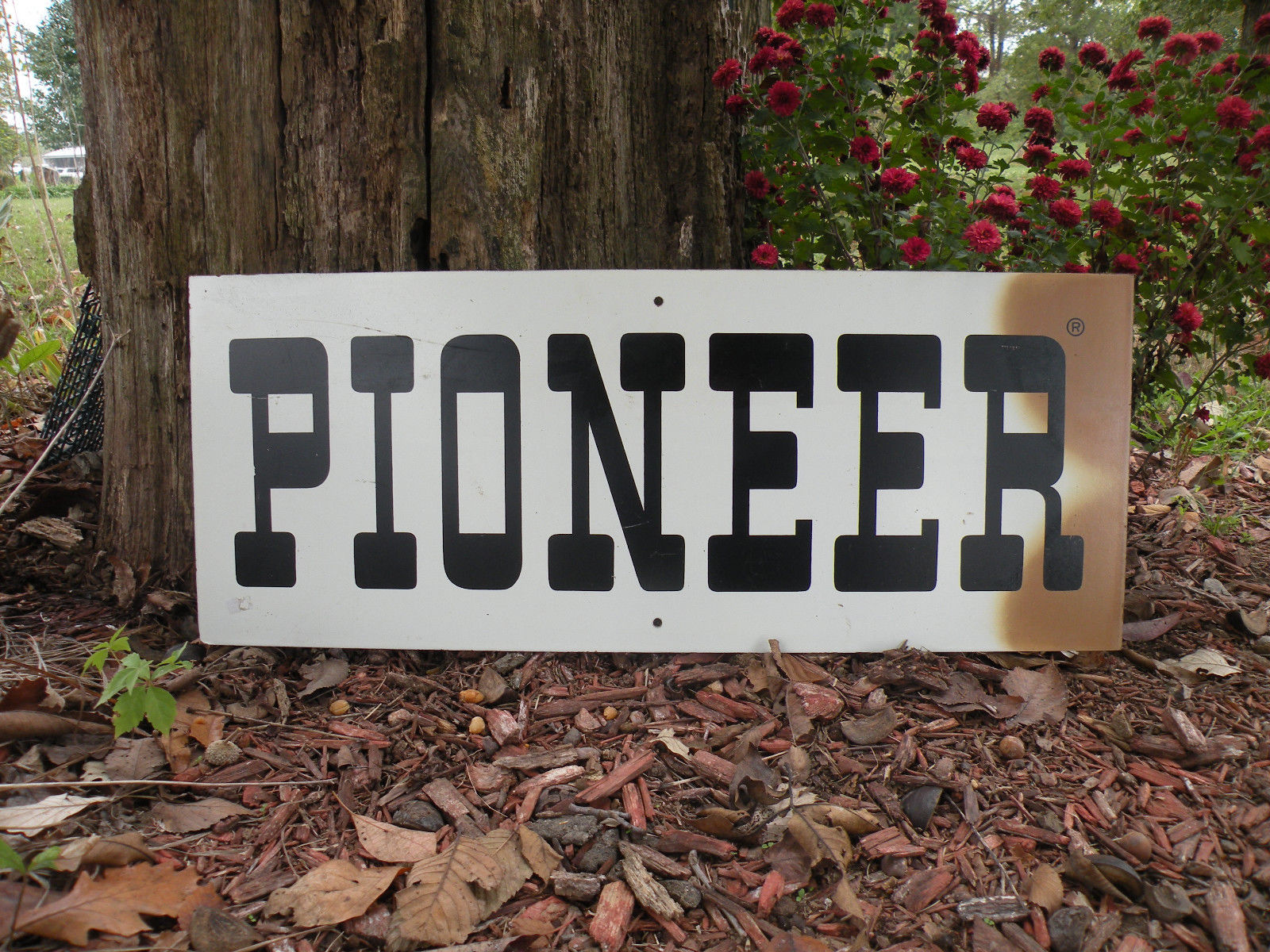Vintage 1950''s Era Pioneer Masonite Sign Seed Corn Farm Fence Feed Barn Illinois