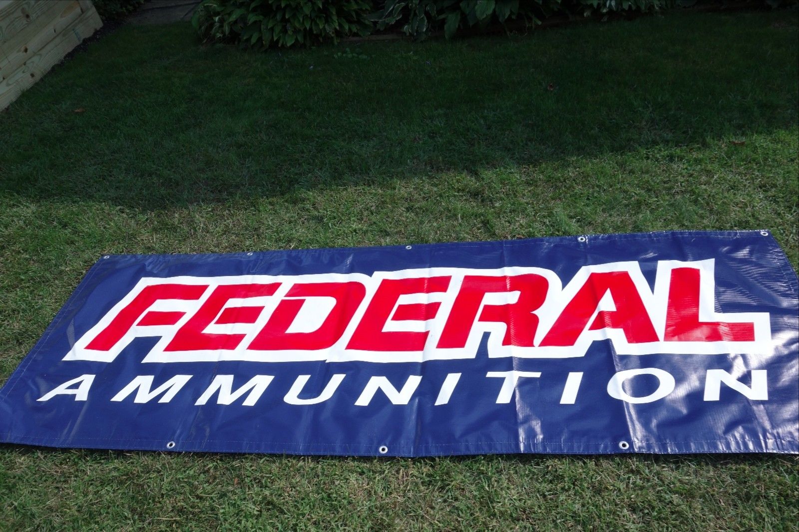 Title (ebay affiliate link): LG 3'' X 7'' HEAVY VINYL ADVERTISING RED WHITE BLUE FEDERAL AMMUNITION BANNER SIGN